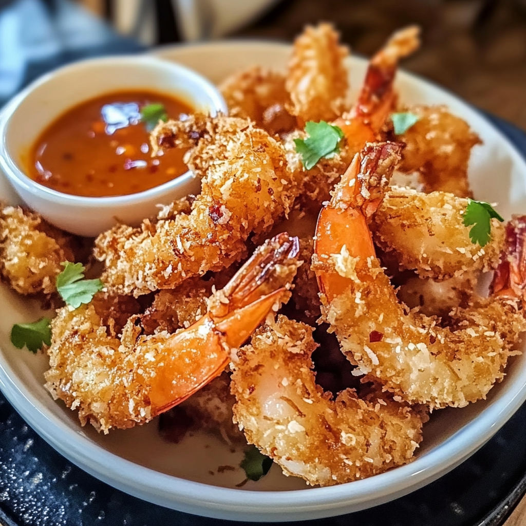 Delicious and crispy shrimp coated in shredded coconut and breadcrumbs, fried to golden perfection, and served with a sweet chili sauce. This recipe combines tropical flavors with a hint of heat for a truly satisfying dish.